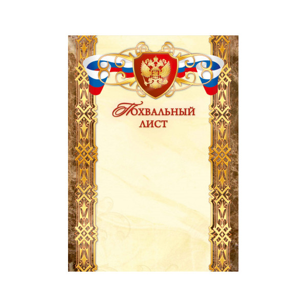 Бланк "Похвальный лист" с Российской символикой, бумага 200г/м2 1536 Квадра