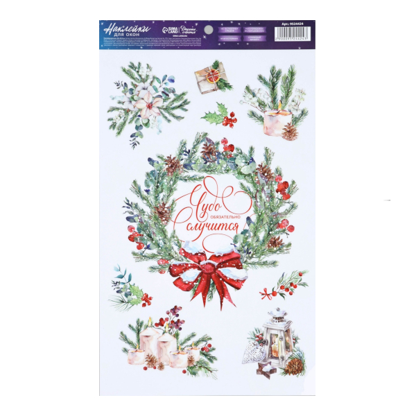 Наклейки на окно "Новогодние чудеса" многораз., 20*34,5см 9524424 Дарите Счастье