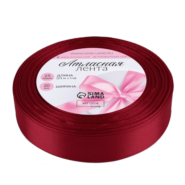 Лента атласная 20мм*23м, глубокий красный 1218295 Арт Узор