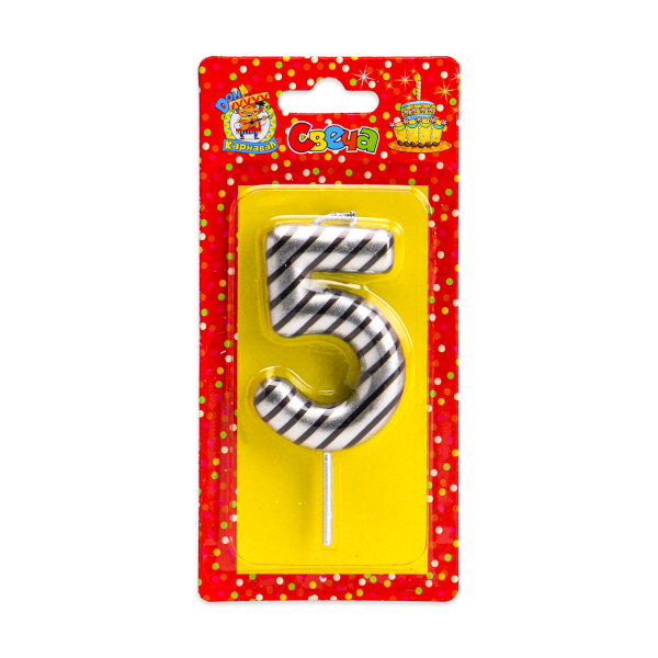 Свеча для торта в полоску "Цифра 5" серебряная, С-2524 Миленд