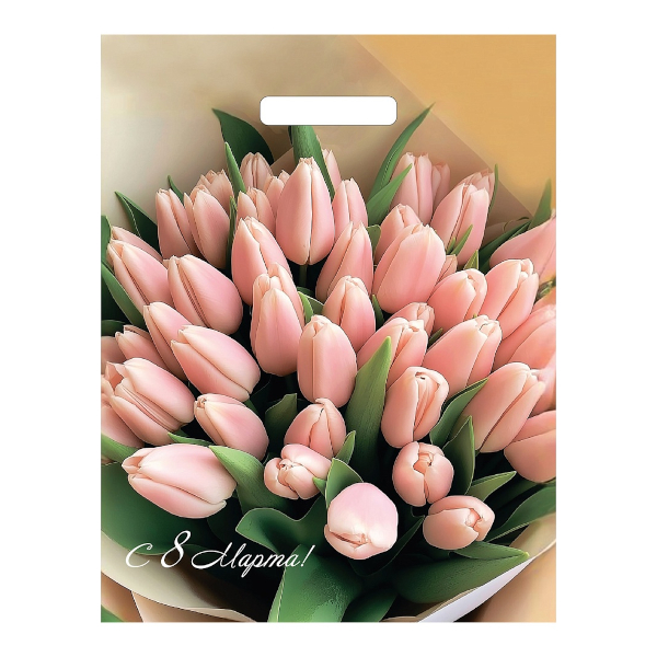 Пакет полиэтиленовый 30*40см "8 Марта. Тюльпаны" 50мкм, вырубная ручка ПИ-8304 Миленд