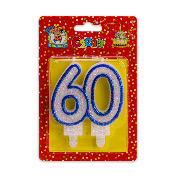 Свеча для торта "Цифра 60. Значимые даты" синяя, С-2488 Миленд