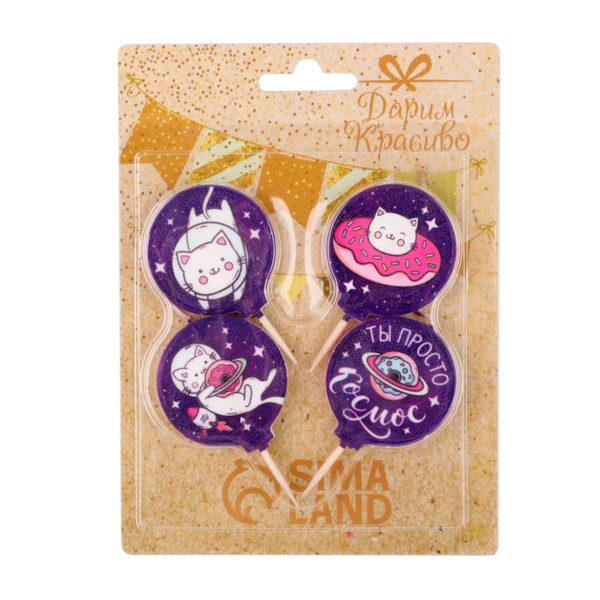 Набор свечей для торта "Космос" рисунок, 4*4,4см, 4шт 3639376 Страна Карнавалия