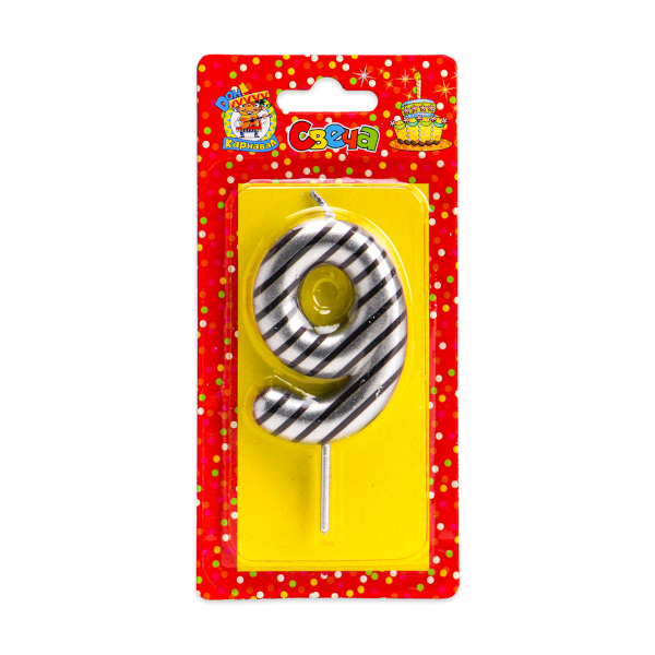 Свеча для торта в полоску "Цифра 9" серебряная, С-2528 Миленд