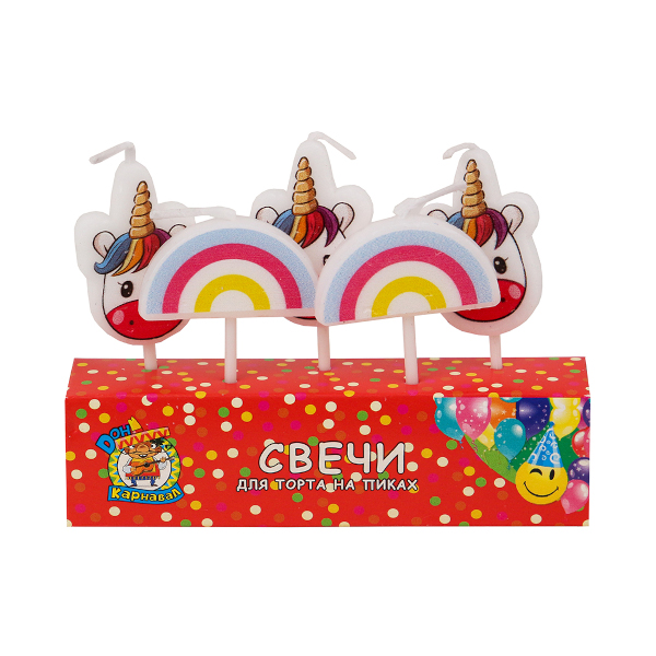 Свечи для торта на пиках "Яркий единорог и радуга" (1уп*5шт) ассорти С-6245 Миленд