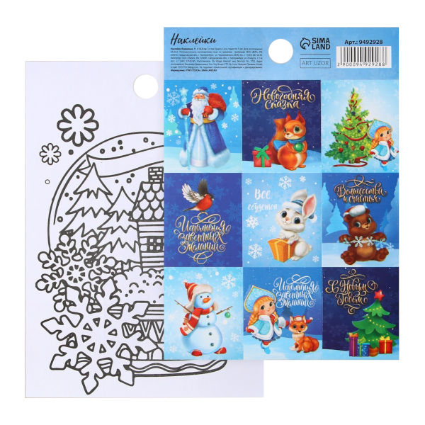 Наклейки декоративные "Новогодняя сказка" 11*15,5см, раскраска 9492928 Дарите Счастье