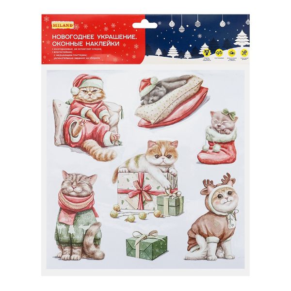 Наклейки на окно "Новогодние котики" 25*25см НН-2092 Миленд