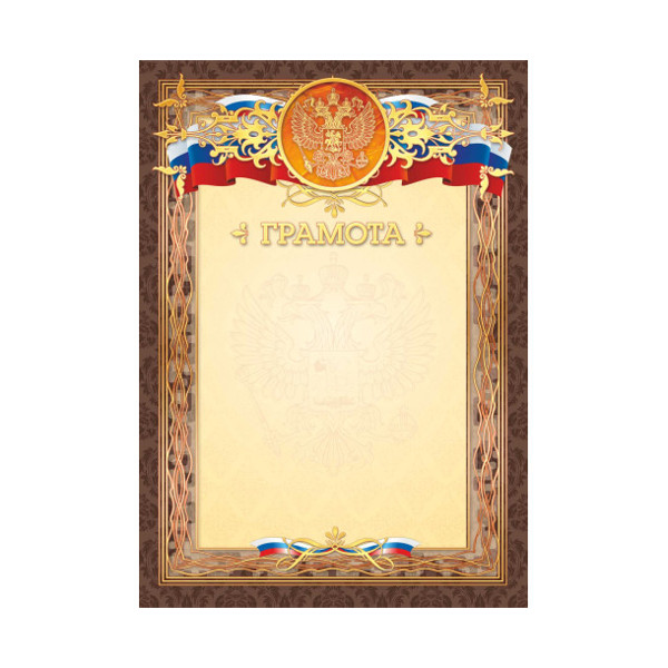Бланк "Грамота" с Российской символикой премиум, коричневая, бумага 200г/м2 2440 Квадра