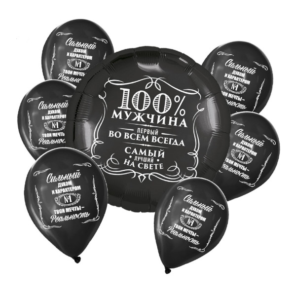 Набор шаров "Сильному духом, 100% мужчина" 7шт (1фольга+6латекс) 10248765 Страна Карнавалия