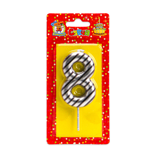 Свеча для торта в полоску "Цифра 8" серебряная, С-2527 Миленд