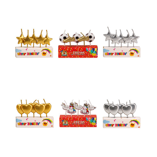 Свечи для торта на пиках ФИГУРНЫЕ (1уп*5шт) ассорти 10*10,5см С-6006/6023/2542/2540/2541/2539 Миленд