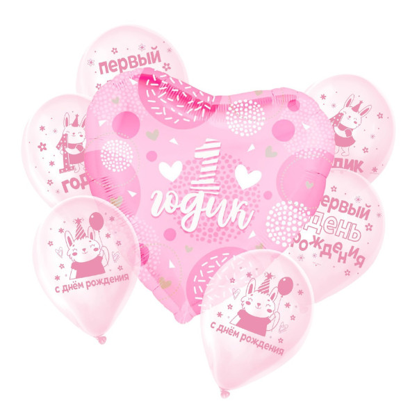 Набор шаров "Один годик. Девочка" 7шт (1фольга+6латекс) 10248762 Страна Карнавалия