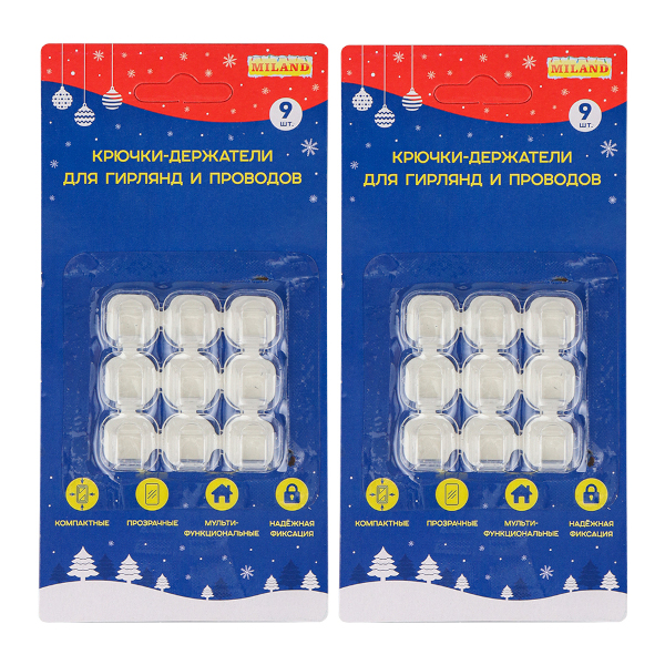 Крючки для гирлянд самоклеящиеся, прозрачный (18шт) НУ-5504 Миленд