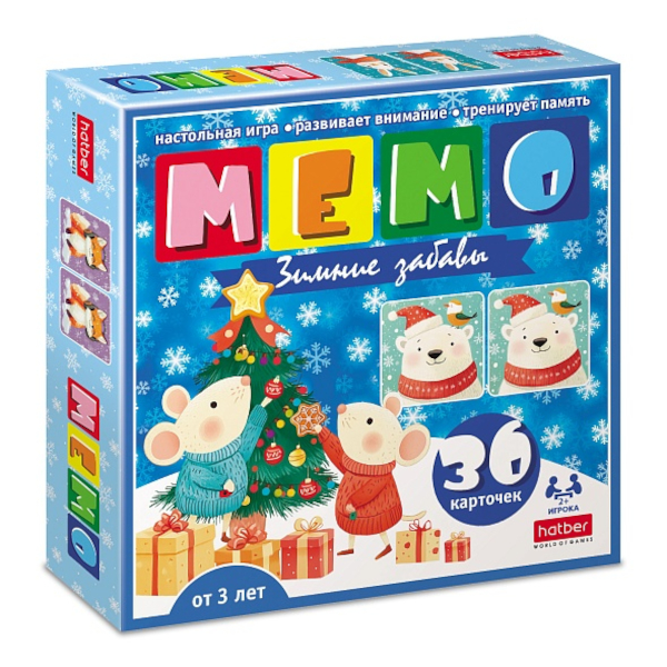 Игра настольная "МЕМО. Зимние забавы" 36 карточек в коробке 36ИнМ_35233 Hatber