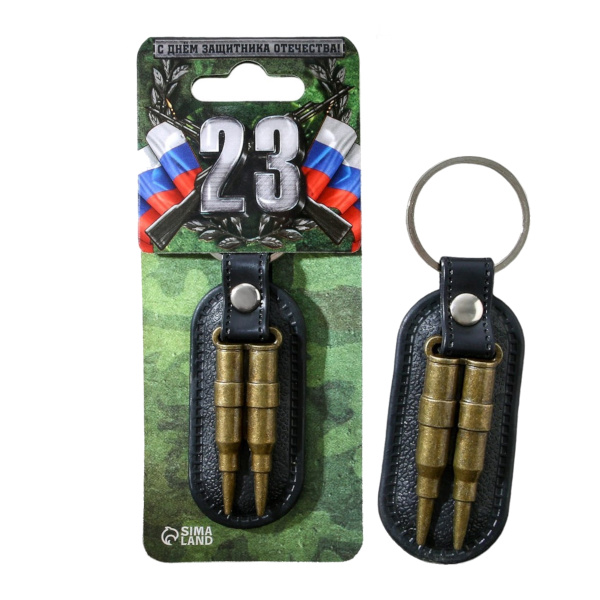 Брелок "23 февраля. Пули" 10*3см, кожа/металл, кольцо 2714882 Сима Ленд
