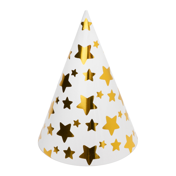 Колпак праздничный "Звезды" белый/золото (1уп*6шт) 6231749 Волна веселья.