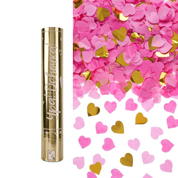 Хлопушка пневматическая "Гендер Пати. Ура, Девочка! Сердца" 30см, золото/розовый 723007 Дон Баллон