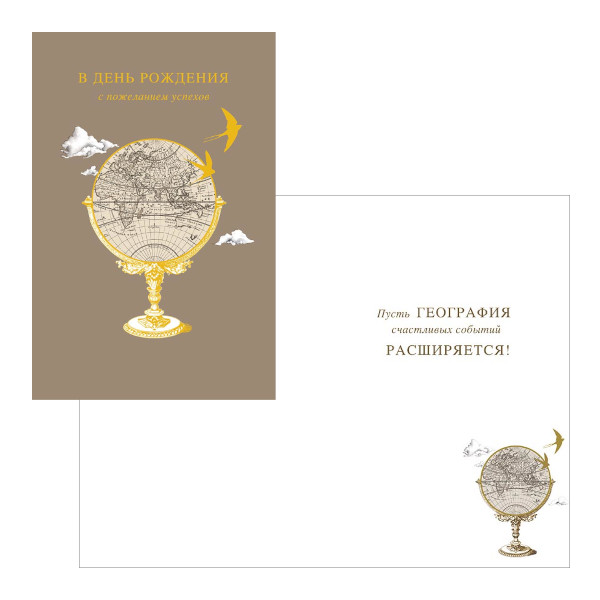 Открытка А5- "В День Рождения. Глобус" 121*183мм 0166.794 Арт Дизайн