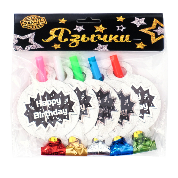 Язычки карнавальные "С днём рождения" 5шт, ассорти 9715114 Страна Карнавалия
