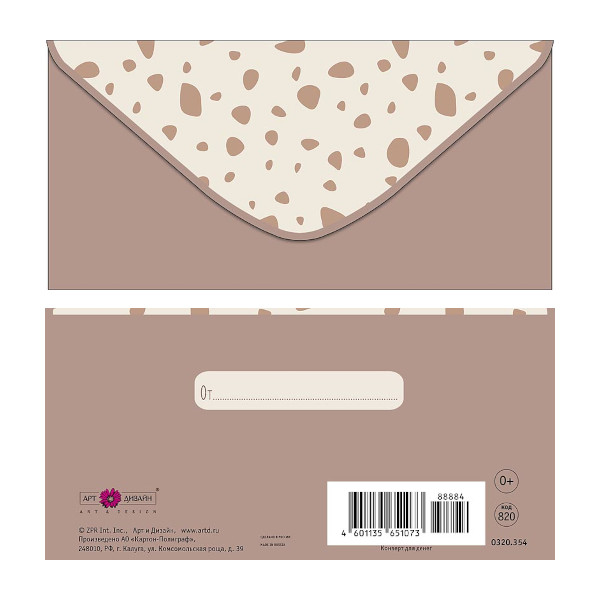Открытка-конверт для денег "Орнамент. Пятна" 8,3*16,7см 0320.354 Арт Дизайн