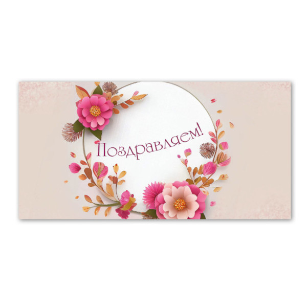 Открытка-конверт для денег стандарт "Поздравляем!" 8,1*16,4см 8422 Квадра