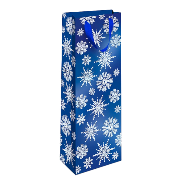 Пакет под бутылку 36*12*8,5см "Снежинки на синем" бумажный 1597.024 Арт Дизайн