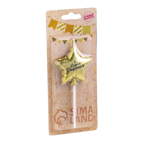 Свеча для торта "Воздушный шарик. Звезда" золото 5,5см 6990851 Страна Карнавалия