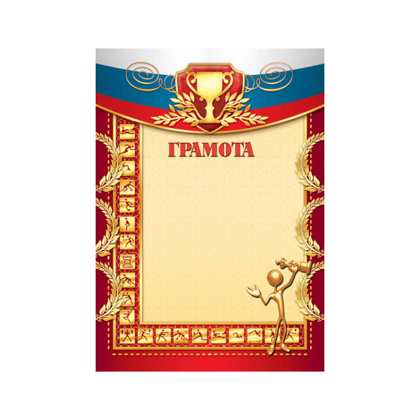 Бланк "Грамота" спортивная с Российской символикой, красная, бумага 200г/м2 317 Квадра