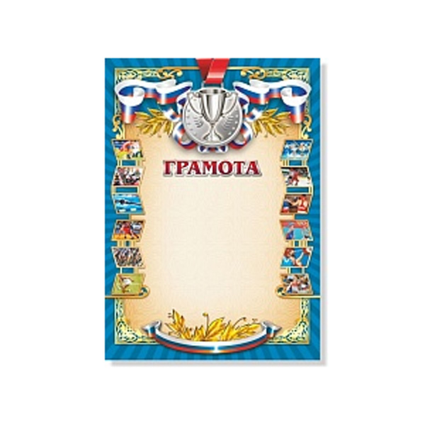 Бланк "Грамота" спортивная с Российской символикой, синяя, бумага 200г/м2 685 Квадра