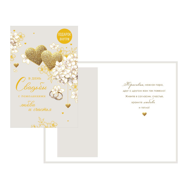 Открытка "В День Свадьбы. Подарок внутри" 12,1*18,3см 0200.505 Арт Дизайн