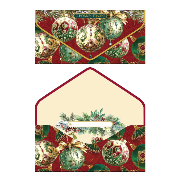 Открытка-конверт для денег "С Новым Годом. Драгоценные шары" 9,3*19см 1216.346 Арт Дизайн