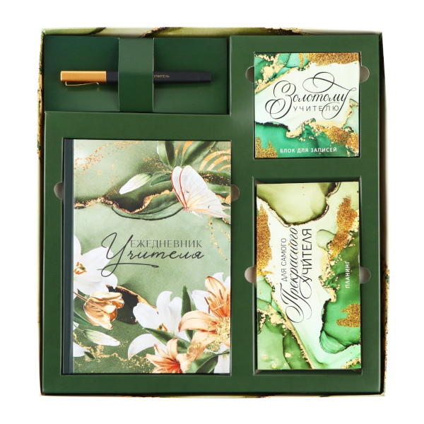 Набор подарочный ежедневник, планинг, ручка, блок бумаги "Золотому учителю" 7701673 ArtFox