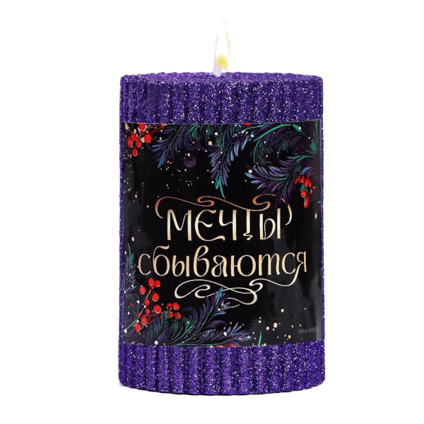 Свеча новогодняя "Новый год. Блестки" 7,5*5см, фиолетовая 10329799 Сима Ленд