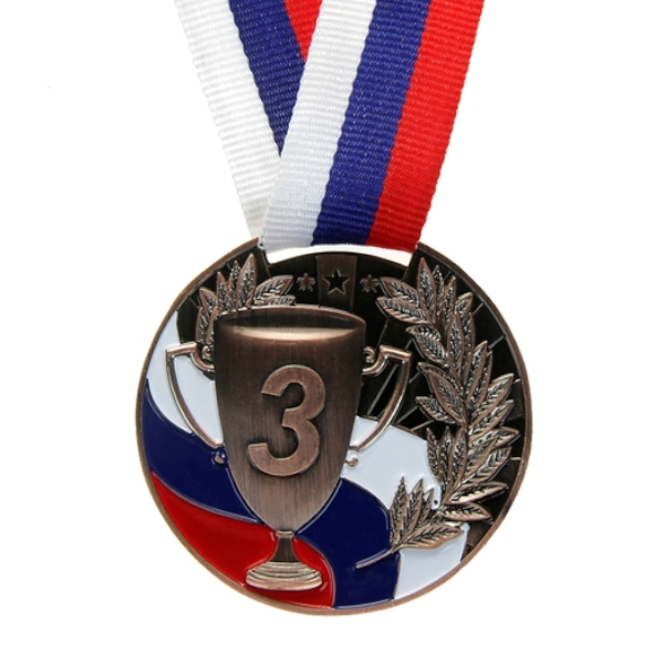 Медаль призовая "3 место" триколор, бронза, d=5см 890155
