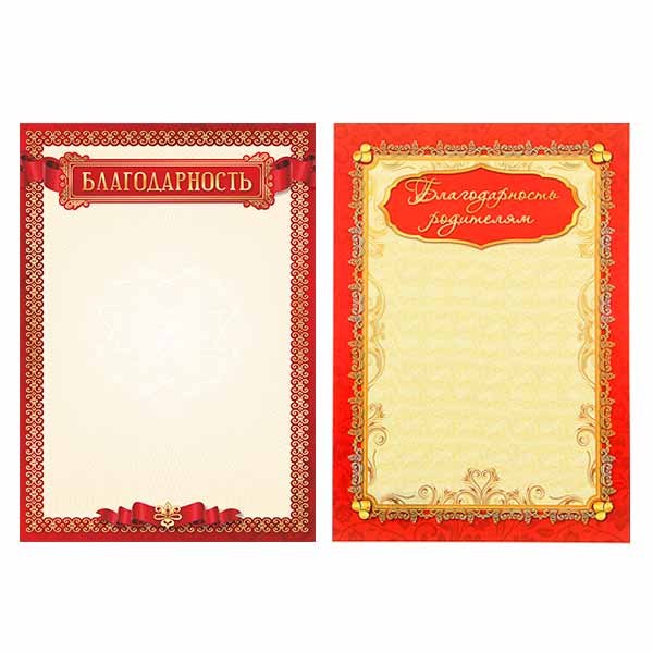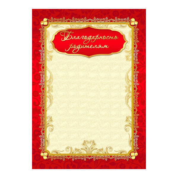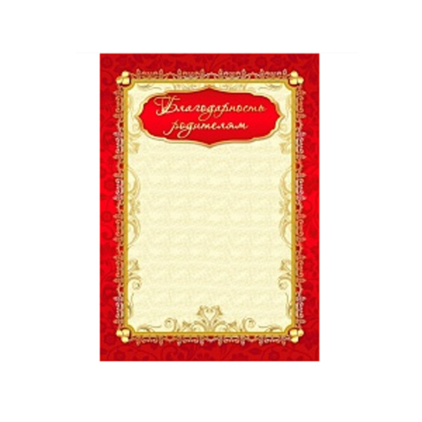 Бланк "Благодарность родителям" бумага 200г/м2 976 Квадра