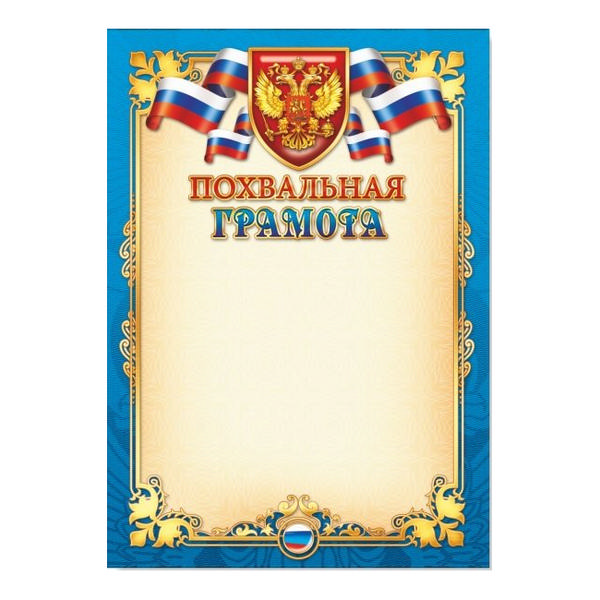 Бланк "Грамота" с Российской символикой синяя, бумага 200г/м2 2229 Квадра