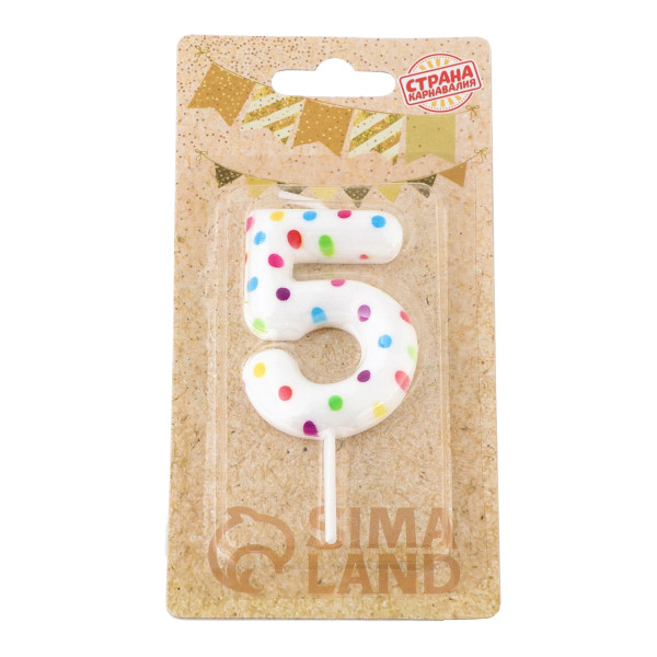 Свеча для торта "Цифра 5. Цветное конфетти" 5,5см 4693312 Страна Карнавалия