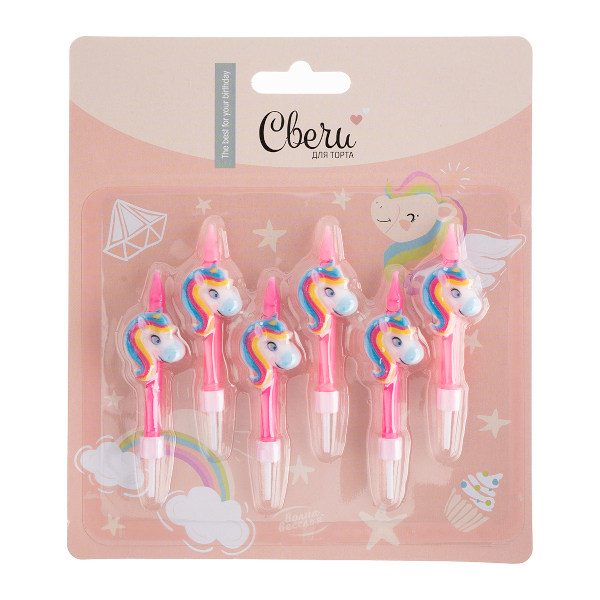 Набор свечей для торта "Радужные единороги" держатели, 2*6+1см, 6шт 630268 Волна веселья