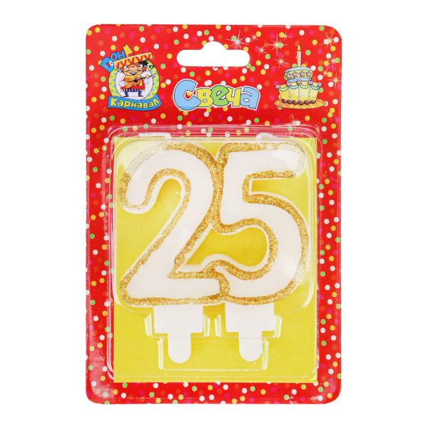 Свеча для торта "Цифра 25. Значимые даты. Золотая" С-2491 Дон Карнавал