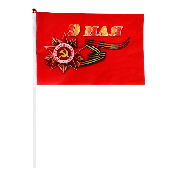 Флаг "9 Мая" 20*28см, пласт. трубочка, полиэфир. шелк, красный 4894540 Take it easy