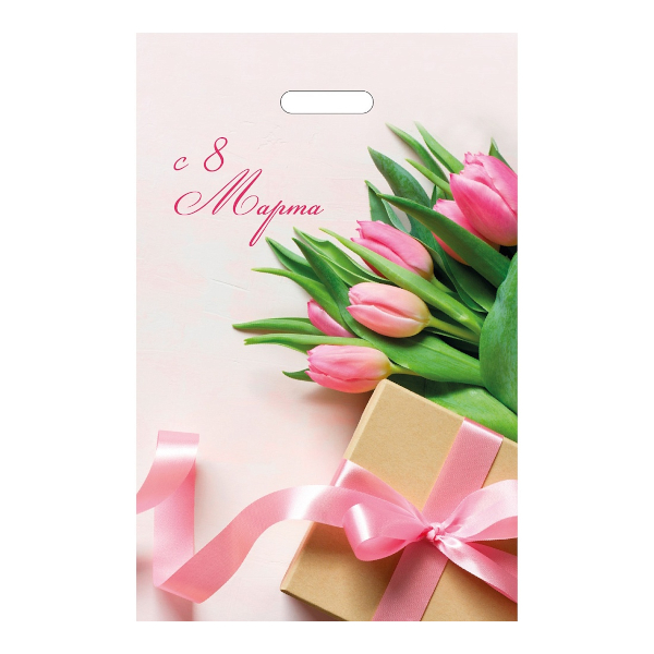 Пакет полиэтиленовый 20*30см "С 8 Марта. Розовые тюльпаны" 30мкм, вырубная ручка ПИ-8303 Миленд