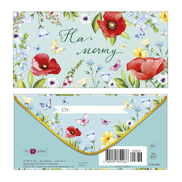 Открытка-конверт для денег "На мечту! Маки" 8,3*16,7см 0320.906 Арт Дизайн