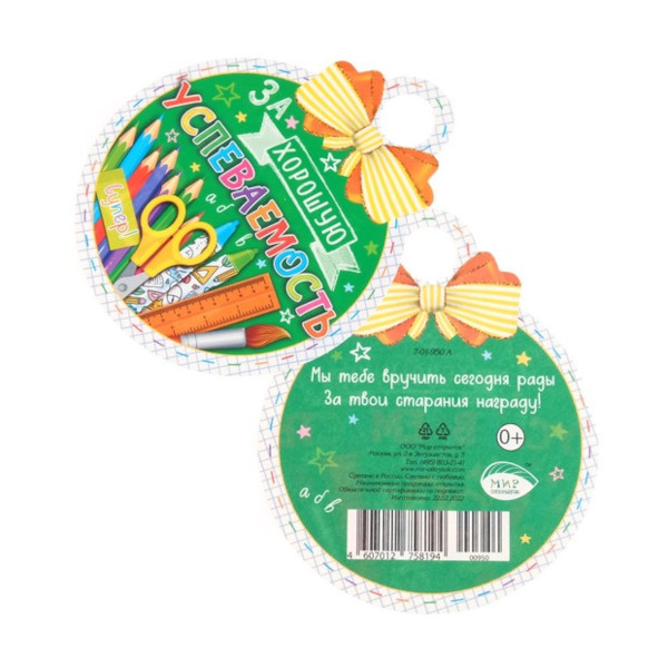Медаль "За хорошую успеваемость" 10см, карандаши 7817779 Мир открыток