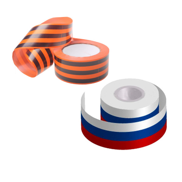Лента полипропилен 3см*50м "Георгиевская/Триколор" ассорти P3097/P3051 Радуга МСК
