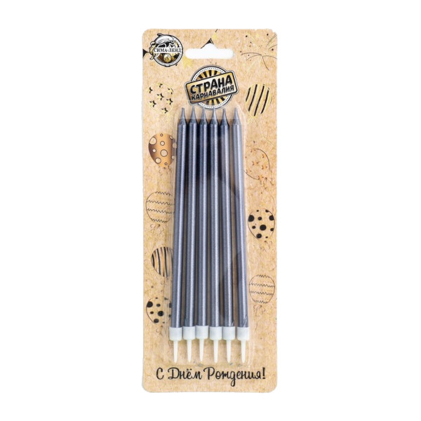 Набор свечей для торта "Ройс" мокр. асфальт, 13см, 6шт 7597555 Страна Карнавалия