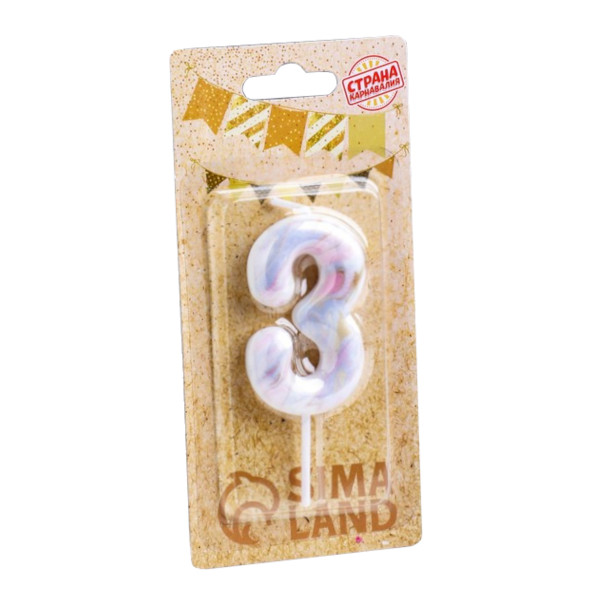 Свеча для торта "Цифра 3. Белый мрамор" 8см 6990832 Страна Карнавалия