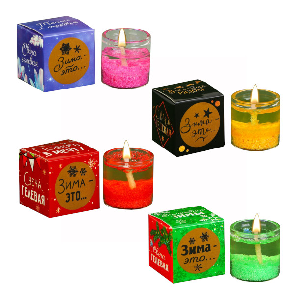 Свеча новогодняя "Зима это .." гелевая ассорти, 2,5*2,5см 9472634 Зимнее волшебство.