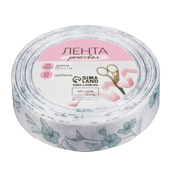 Лента репсовая 25мм*23м "Цветы" рисунок, белый 9332227 Арт Узор