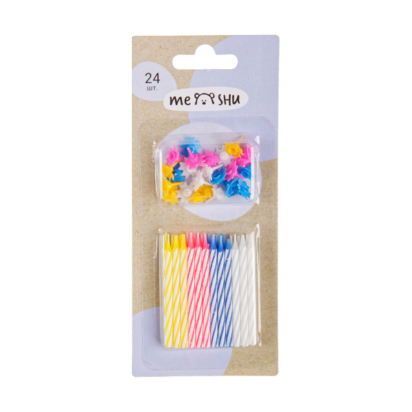 Свечи для торта с держателями "Мини" 5,5см, 24шт., цветные, блистер MS_32371 MESHU