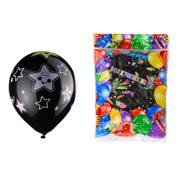 Набор шаров "Черный. Неон рисунок" d-30см, 50шт, ассорти МС-3574 Basir